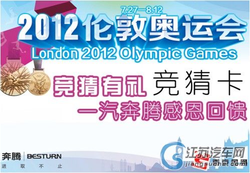 期待已久的2012伦敦奥运会(7.27-8.12)开幕了,作为自主品牌一汽奔腾[报价 4S店],在伦敦奥运会期间,特推出“奥运盛‘惠’ 国通献礼”大型促销活动来为中国选手助威呐喊。