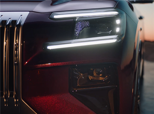 此外,前脸还提供分体式灯组,并配备投影大灯,可在地面投射光幕,提供情绪价值,这也是豪华车常用的配置之一。