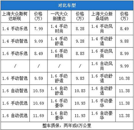 货比三家 斯柯达昕锐对比新捷达/桑塔纳 |
