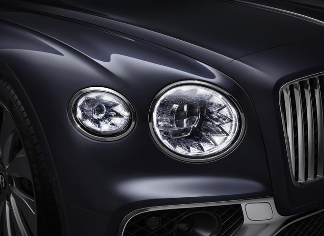 此外我们还能看到新车前保险杠下方进气口同样由大量镀铬材质覆盖,而内部也由镀铬饰条所分割,具有十分夸张的视觉效果。值得一提的是,全新宾利飞驰重新设计了车头的飞翼“B”字徽标(Flying B),其中立标飞翼可点亮,并可根据需求在车内可控制升降。