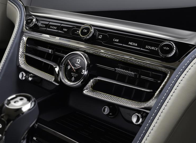 内饰部分,全新一代飞驰采用最新的飞翼式家族设计风格。新车内饰采用双色皮革包裹,搭配做工精细的金属饰条和双色实木饰板,进一步体现了它的奢华感。此外,全新一代飞驰可选配“Mulliner驾驶套件”(Mulliner Driving Specification),其中宾利针对真皮门板饰面首次引入的立体菱形真皮内饰设计,在没有缝线的基础上通过皮革起伏呈现出层次感。同时新车还在各种旋钮处及出风口装饰等处采用了类钻石贴片饰面,根据宾利官方的描述,这样的贴片全车最多可以达到5331个。宾利独创的的三面翻转式的中控触摸屏也出现在了全新一代飞驰上,其中中控屏尺寸为12.3英寸,车机系统UI经过优化后将包含更多的功能,包括Apple CarPlay等。
