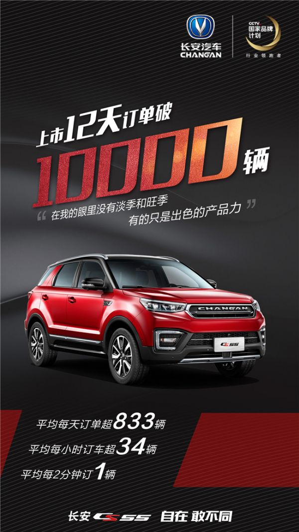 每两分钟卖一台,CS55上市12天订单突破万辆 |