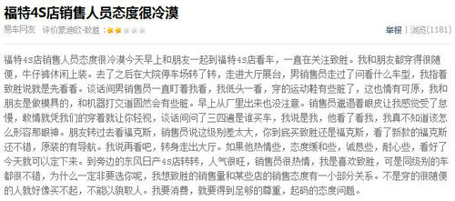 厂家 应答 品质问题如打太极 售后服务成诟病 只管福克斯漏油的 品质问题投诉见诸各大投诉平台,但长安福 特长 工夫以来向来以“失声” 应答,而迟来的一份回应也是以“走程序”、“不清晰” 搪塞了事,引起 辽阔用户强烈不满。不少媒体都对此事做过 频繁报导: 关于全国各地接踵而至的新福克斯投诉,本报记者 通过几番周转 联络到了长安福特公关总监王建辉,他给出了这样的 答复;“为了 保障工作 品质和效率,客户投诉必须学会走程序,要向4S店和区域反映状况。媒体采访同样需求走程序,首先得向4S店和区域反映,而不是直接找厂家。” 由于新福克斯的生产厂家是长安福特,而本地4S店关于新福克斯的问题也解决不了,这是众多车主反映的一起问题。在迫于无奈的状况下,本报记者也向厂家客服反映状况,但过了10多天 消息全无。试问,在这样的状况下,记者直接找公关总监讨个说法是不是合情 正当? 依照王建辉的要求,记者再次找到负责华东区公关事务的王舟舟,关于新福克斯 群体性漏油、渗油的状况,她给出了这样的 答复:长安福特厂家会在 合适的 工夫给 辽阔车主一个 答复。当记者提出多久能给出回复时,王舟舟 示意不清晰、不晓得。 关于长安福特首次面对媒体“走程序”、“不清晰”的回复,我们也只能 发问,这便是其宣传的尽心尽责为客户服务的准则吗?面对如此之多的新福克斯投诉,请长安福特放下架子拿出诚心, 真挚地协助每一位客户解决问题,而不是一拖再拖。 (原文:《厂家首次回应新福克斯发动机漏油 渗油事件 如打太极》http://auto.zjol.com.cn/05car/system/2013/03/27/019239198.shtml) 在售后服务方面,长安福特同样被人诟病。尤其是售后服务态度,更是让心憧憬之的用户 萌发悔意。在2012年底汽车售后服务媒体暗访团暗访 考查中,也曾给出“配件 便宜但服务劣质”这样的评语(原文:《长安福特售后服务:配件 便宜但服务劣质》http://www.jsche.net/upload/2013/2013427471682.jpg"> ![]() ![]() ![]() ![]() ![]() |