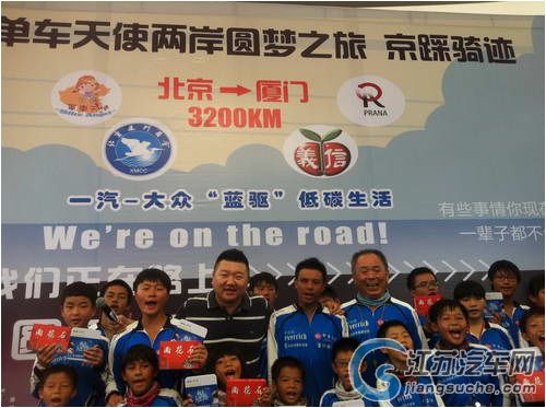 单车天使来自台湾云林私立信义育幼院的孤儿,在坚持每年环岛骑行活动五年后,今年7月,怀着对祖国大陆的梦想,在志愿者的协助下,这群孩子将放飞“北京-厦门3200公里”的梦想。 他们沿途将经过鸟巢、孔庙等名胜,在骑行中增强对祖国大陆的了解与文化认同。一路上,他们还将拜访当地孤儿院和弱势团队,希望将自信、阳光和爱心传递下去。 今天,他们顺利的抵达了六朝古都南京。在南京朗驰苏润一汽-大众[报价 4S店]4S店内举办了一场小天使们的感恩会。会上江苏省台办,南京市台办的领导都给予了物资捐赠和致词。朗驰苏润一汽-大众4S店更是准备了充足的物资以及南京的特产雨花石赠送给小天使,让他们接下来的路程能更加顺利,安全,也希望他们在南京的这一短暂停留能留下深深的记忆。 南京的志愿者以及一汽-大众的车主都纷纷带着孩子们到达现场,和台湾的小朋友们一起表演节目,互动游戏。感受到有意义的暑假生活,并且对于台湾单车天使们的自信,自强,勇敢的精神赞叹不已。也通过一汽-大众的蓝驱技术让小朋友们感受到了低碳,环保的理念[报价 4S店]。