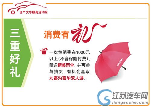 注:以上所有套餐及礼品限量供应,客户先到先得(可预约)。 详情请垂询东风日产文华专营店(服务专线:025-66629901/02/03)或登录www.dongfeng-nissan.com.cn查询。 东风日产文华专营店 |