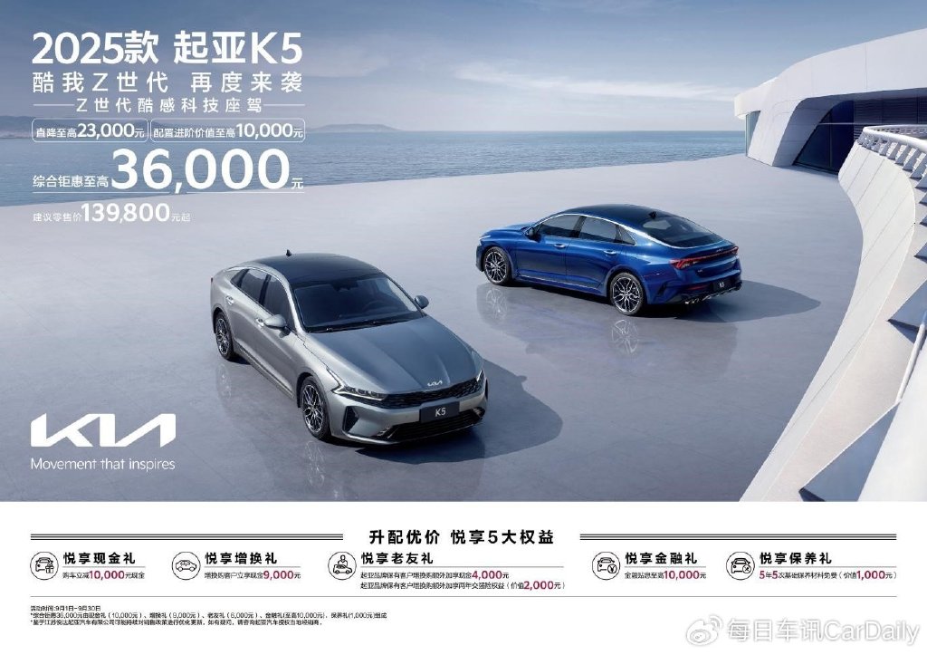售13.98-18.98万元,配置全面升级,2025款起亚K5正式上市