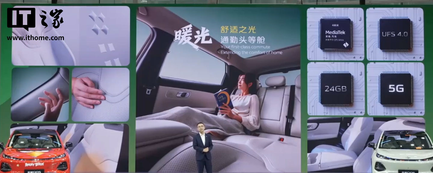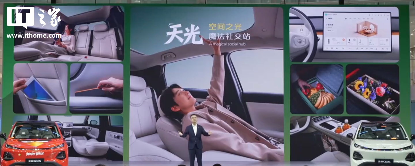 内饰方面,全新启源 Q05 提供墨玉黑和玉石白内饰配色可选,搭载 10.17 英寸悬浮式液晶仪表以及 15.6 英寸中控屏;配备天枢智能座舱,搭载 4nm 的联发科 MT8676 芯片,支持端侧大模型、5G 网络等,内置语音助手接入科大讯飞星火大模型,还能连接海尔、美的等品牌家电。